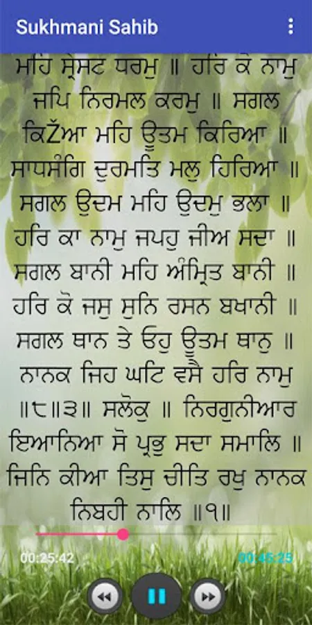 Sukhmani Sahib helps you to read and listen to path daily along with play and pause feature and it also includes seeking bar effects which help you to move forward and backward in the path within the app.