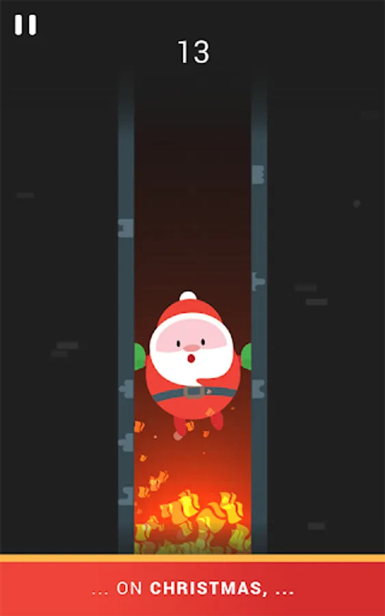 "Ho, ho, ho", said Santa and he jumped into the chimney. But little boy doesn´t know, that fire isn´t a toy. The fire is growing and Santa is stuck in the chimney. Help Santa go to the top and escape from the fire. Save Christmas Day!
