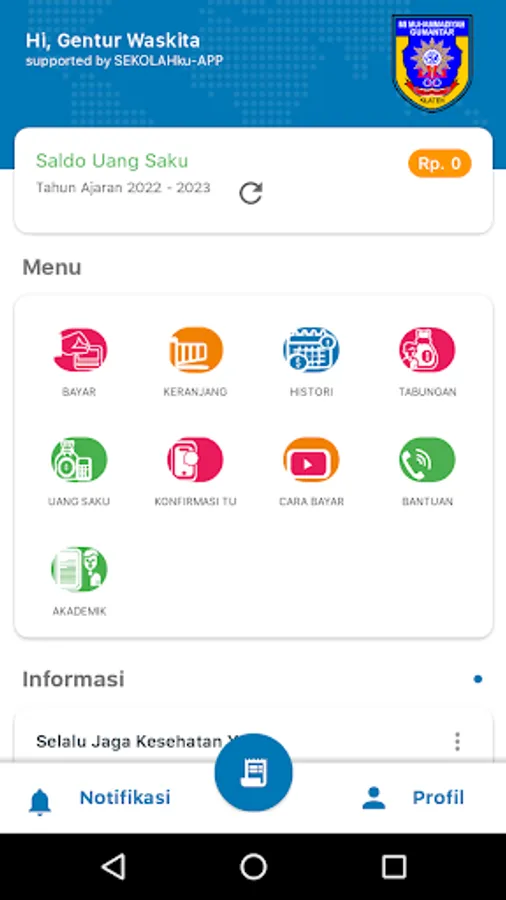 Is an application developed by PT. Egref Telematics Nusantara with the brand SEKOLAHku-APP collaborates with MI Muhammadiyah Gumantar to make it easier for parents to obtain information about student payment status and related information.
