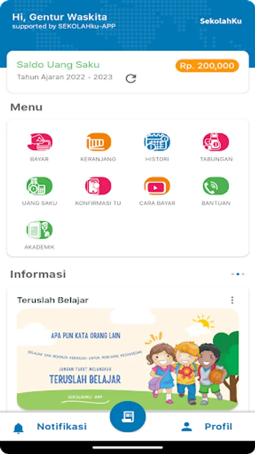 Is an application developed by PT. Egref Telematics Nusantara with the brand SEKOLAHku-APP collaborates with SD Muhammadiyah Palur PK to make it easier for parents to obtain information about student payment status and related information.