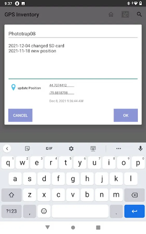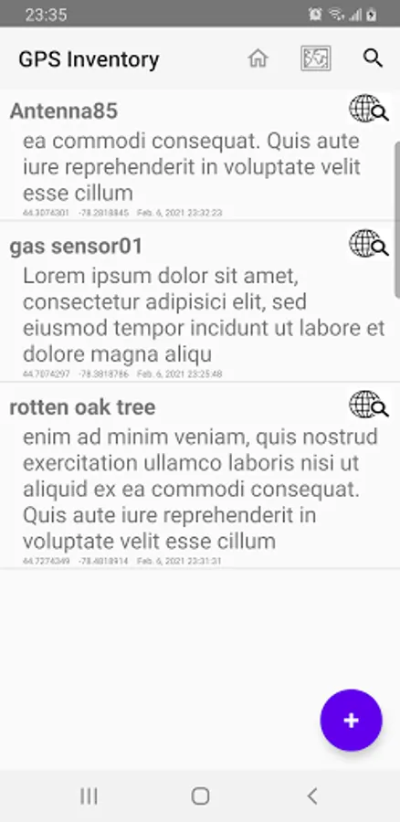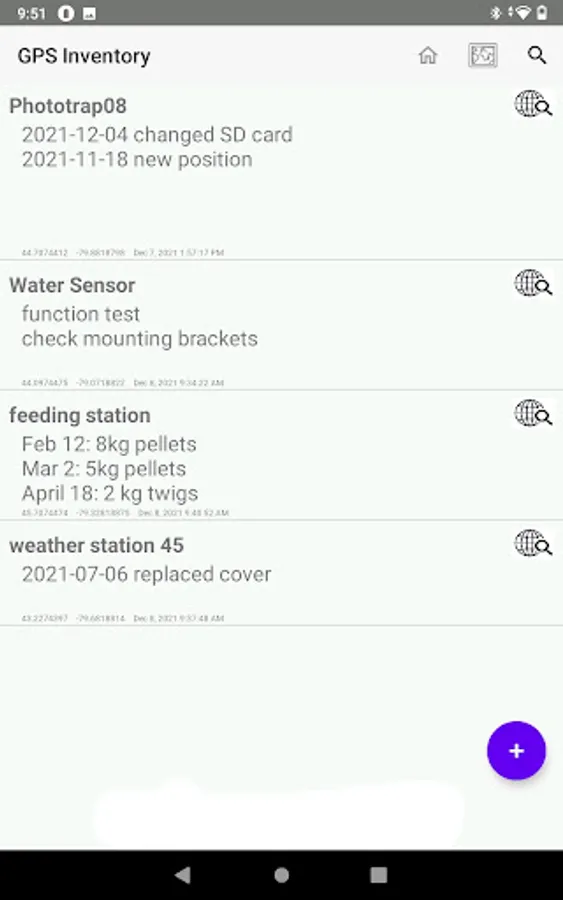GPS Inventory allows you to create a catalog of geolocated assets.