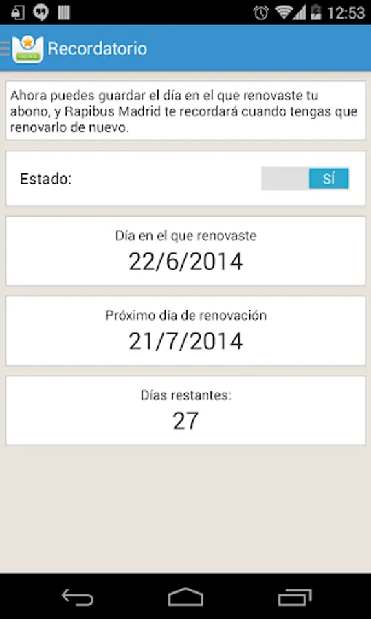 Plus you can now save reminders that warn you when you have to renew your Contactless Transport Fertilization 30 days Rapibus alert you the day before it expires so do not forget to reload!