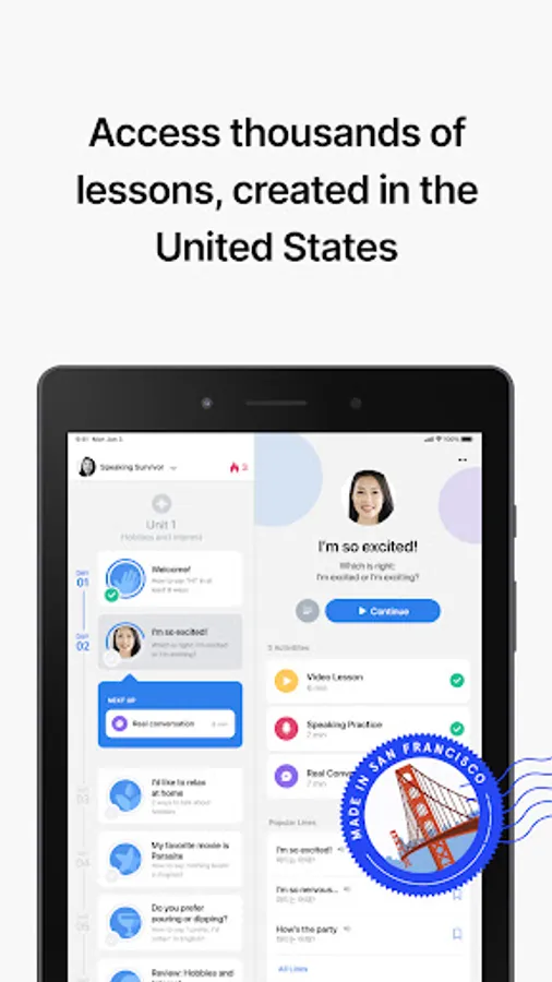 Speak is an app that helps you get more comfortable speaking English out loud by letting you practice speaking out loud more than any existing method.