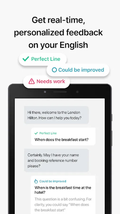 Whenever you’re using Speak, you’ll be speaking a ton — and the app will always be listening and providing feedback to make sure you fix mistakes.