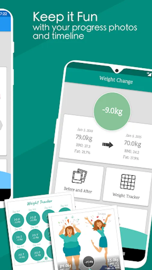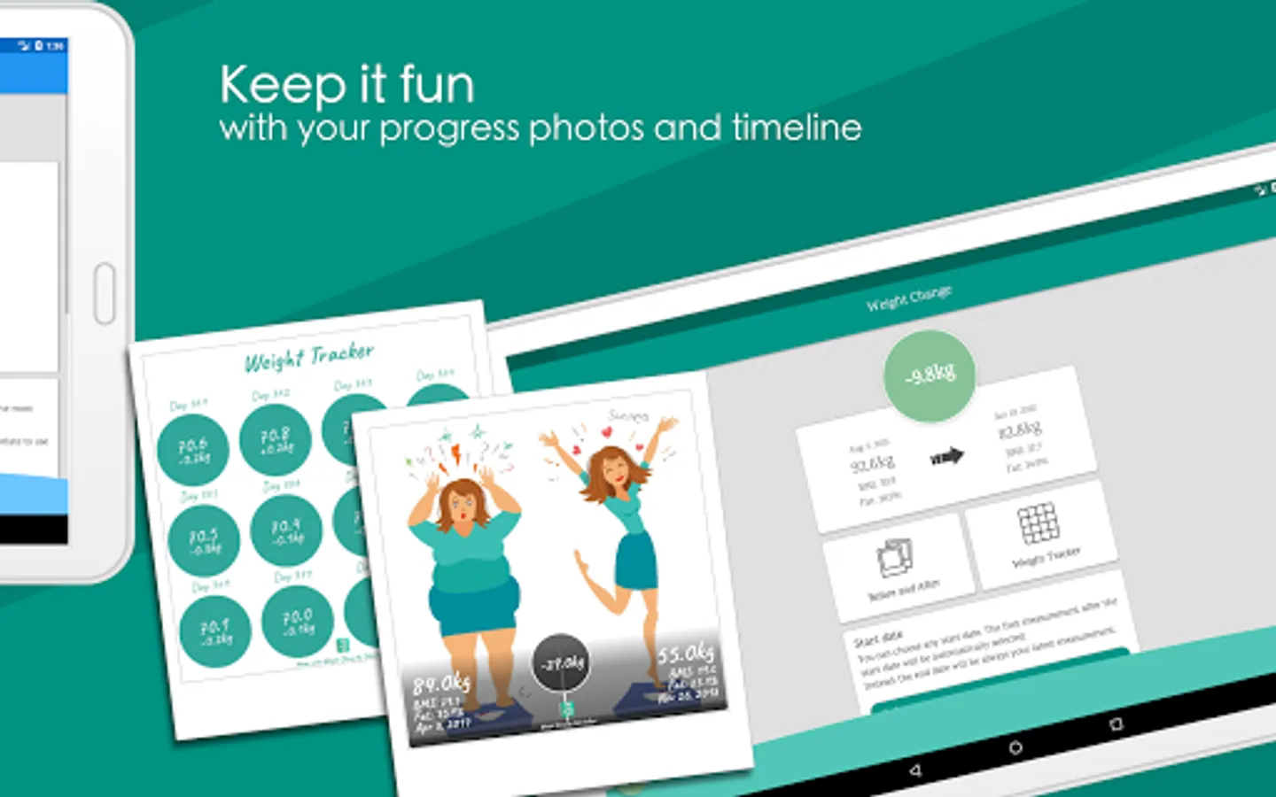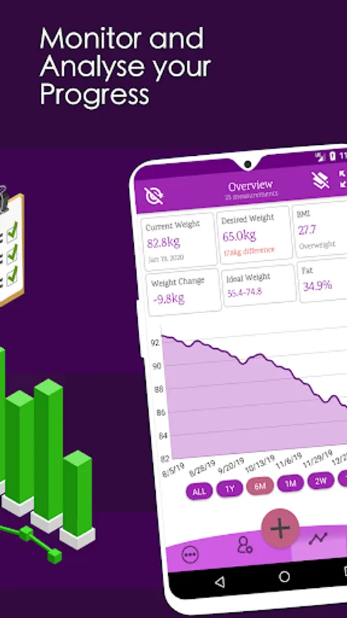 For the data nerds, for the personalization lovers, and for the more attentive persons, you will find inside this Weight Loss Tracker also: