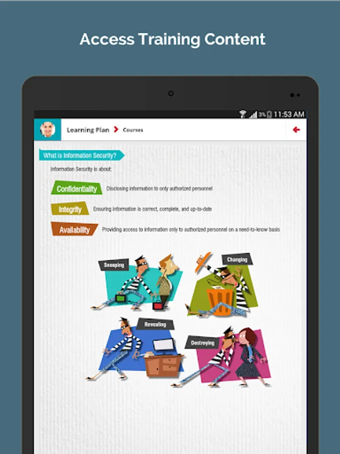 SE Learning encrypts all training content downloaded by users onto their devices using AES Data Encryption. Further, the content is available to users post authentication of their credentials on the SE Learning application.