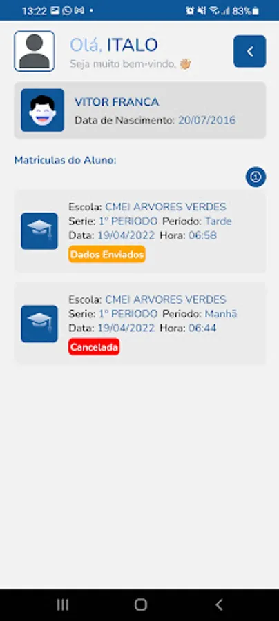 Application to perform online enrollment in the municipal network of Teresina / PI