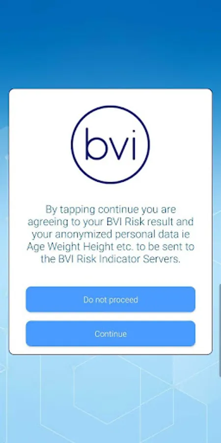The BVI-Risk app requires a confidential identifying code to be sent to a user applying for insurance. The data is then securely stored alongside your other data provided to the insurance company during the course of their assessment when providing you with a quotation on insurance.