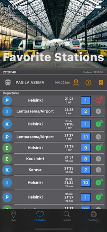 Quick access to your favorite stations so you always know when you need to hurry in order to catch your train!