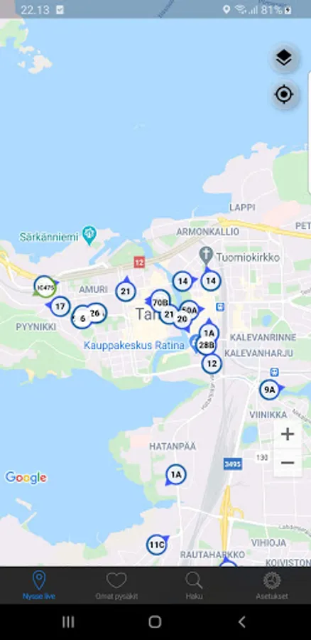 Track Helsinki, Tampere, Turku & Oulu public transportation vehicle location live on map and trains in everywhere in Finland.