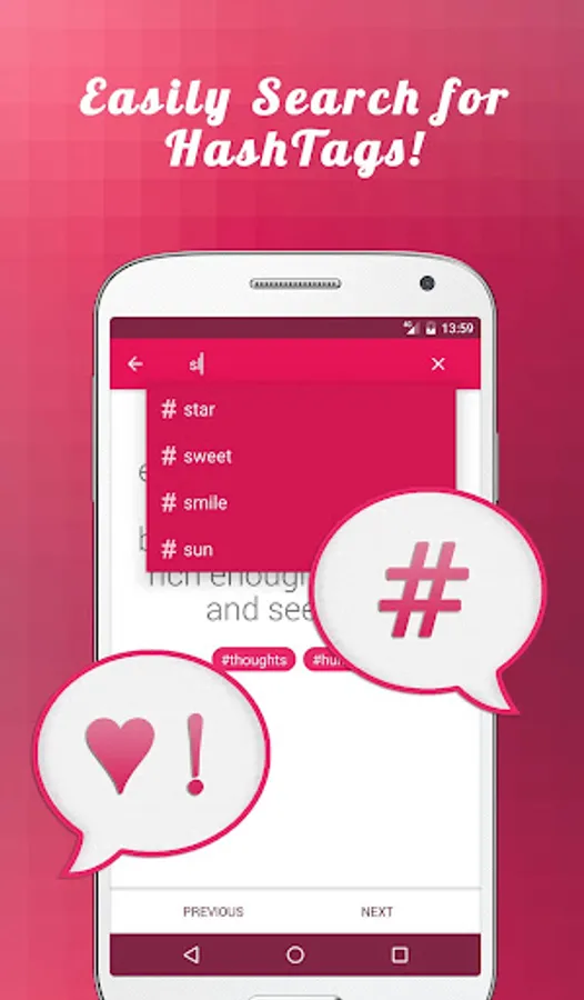 Use hashtags to search though categories like: #sweet, #humor, #poetic and many more.