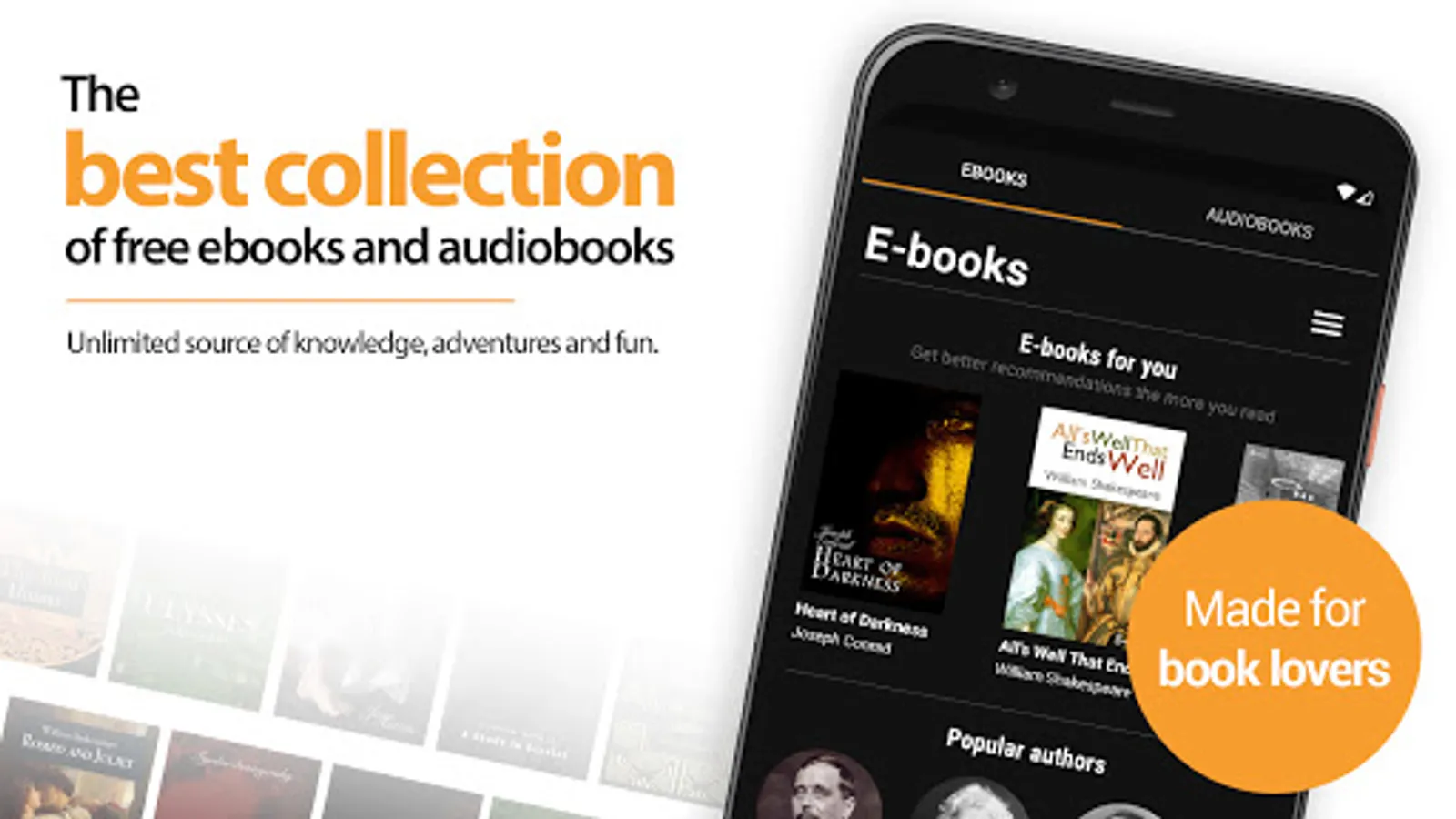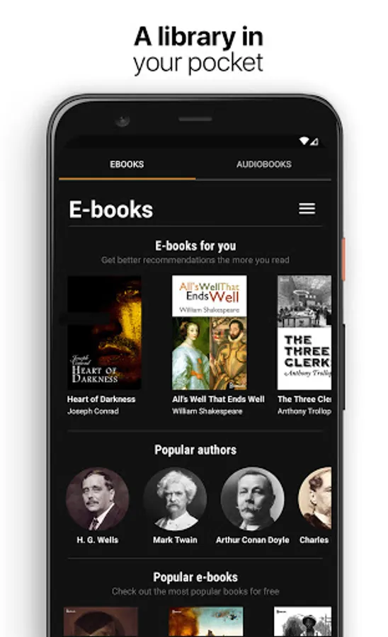Made for book lovers. Not only ebooks, also audiobooks. We love all bookworms and casual readers. With free ebooks and audiobooks you will never be bored