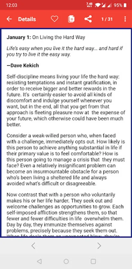 This isn't just an inspirational app; most of the entries deliver practical suggestions that you can immediately apply in your life to become more disciplined.