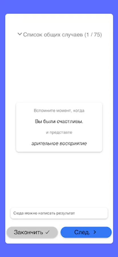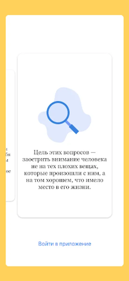 In the application you will see questions aimed at the positive moments of your past, answering which, on the one hand, you will be filled with positive and improve your mood, and on the other hand, the influence of the negative past on you will weaken. When working out, your perceptions also improve: hearing, vision, smell, emotions, etc., which at times increases the pleasure from any manifestations of life, intelligence and your abilities. This application is able to unlock your potential, allowing you to achieve greater success and happiness.
