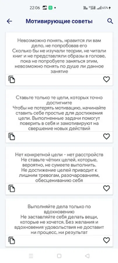 The application "Self-development and personal growth" is unique, all information was specially written and selected by the authors.