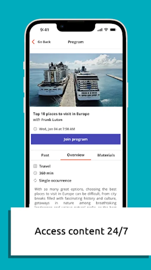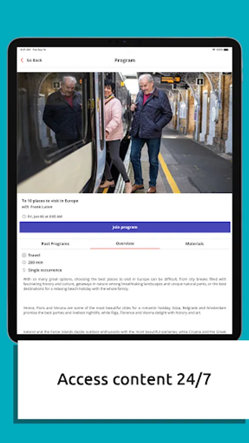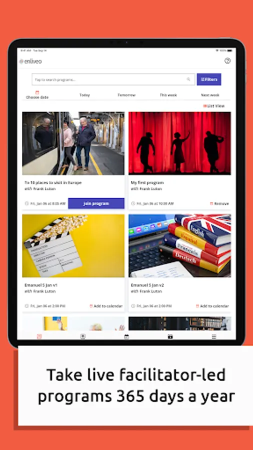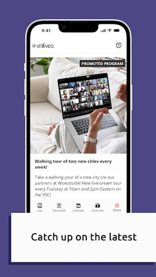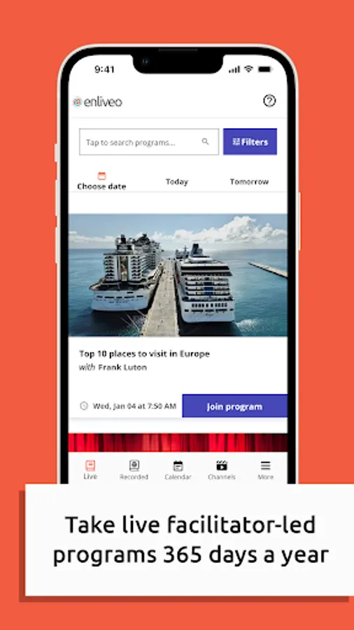 Programs are the main attraction at the enliveo. Offered live every day, they are listed in an easy-to-join format and require no preregistration. Just click on Join Program via your device for a real-time experience.