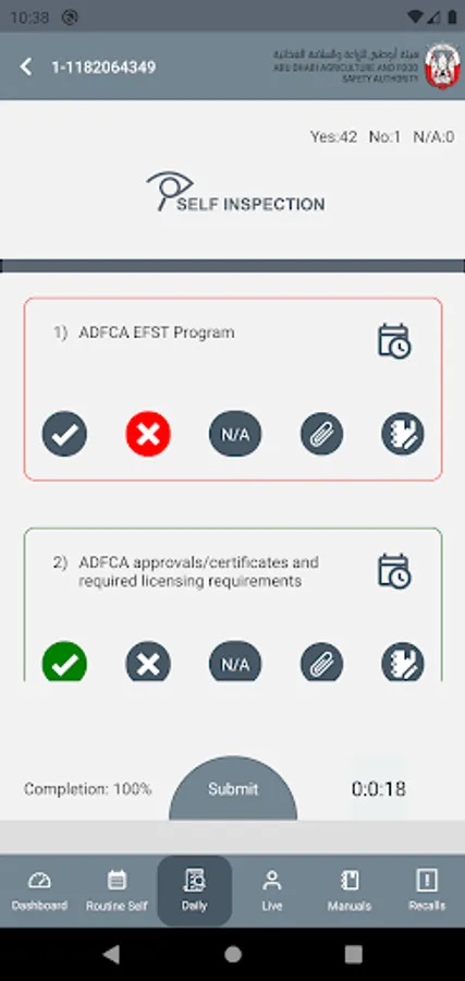 ADAFSA Self Inspection Screenshots