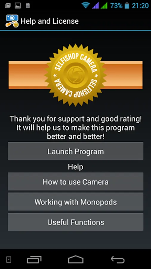 This is License and Help file for Selfishop Camera. Install this app for unlocking of all additional functions. Thank you for support and help.