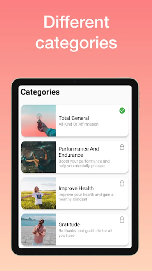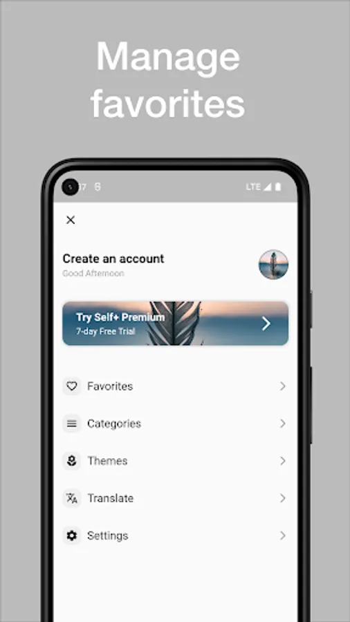 Self Plus Self Plus helps to impregnate positive thoughts in your mind by giving you reminders at specified duration you can set. You can select affirmations from different categories, which you want to show as notification.
