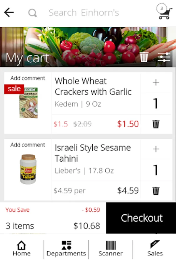Using Einhorn's Supermarket shopping app will let you search and order products from the store, quickly and easily.