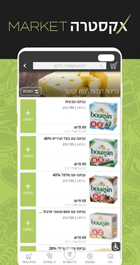 Extra Market is an online supermarket that provides a one-stop shop solution for fresh food products: deli, butcher, fish, bakery, fruits and vegetables and a variety of unique and leading food products, all in fast delivery from day to day.