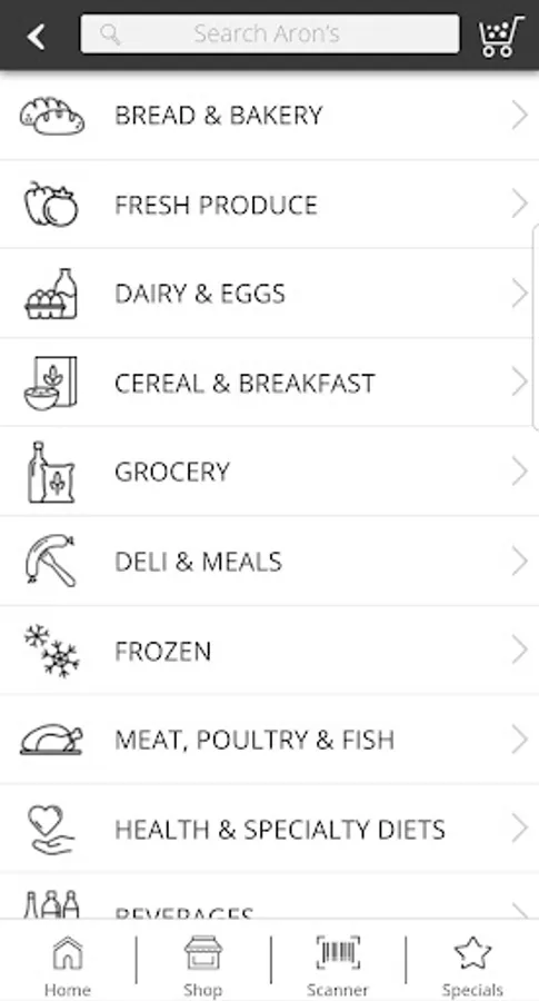 Using Aron’s shopping app will let you search and order products from the store, quickly and easily.