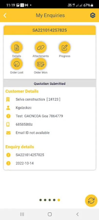 Enquiry followup , quotation submission and customer order own status could be updated from the mobile app via enquiry.