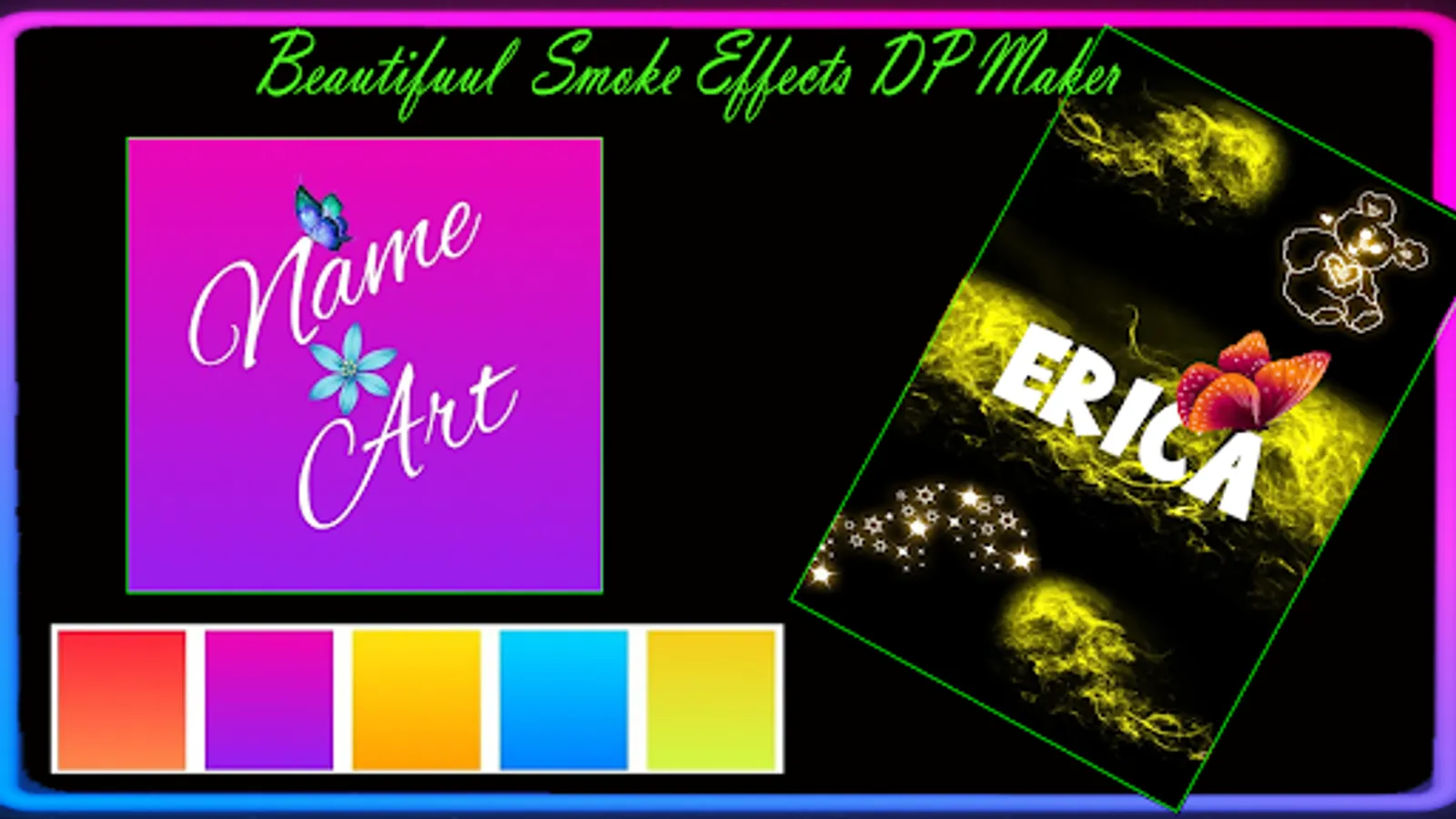 Create Name Art with Smoke Effect Fonts created for you. Name Art Maker and DP Maker comes with 200’s of fonts and styles, 400+ Stickers to decorate your name, Create Name Pics Art with different Styles and Colors and decorate with Picture Stickers.