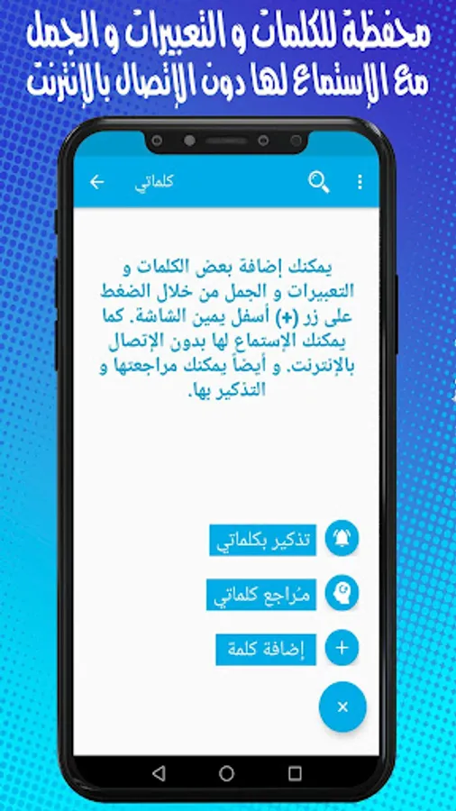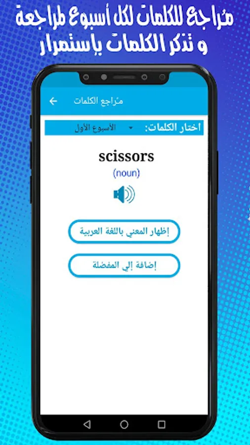 - يوجد "مـُراجع للكلمات" لكل أسبوع لمراجعة الكلمات بإستمرار و كذلك يوجد "تذكير بالكلمات" و هو عبارة عن إشعارات يرسلها التطبيق لك علي مدار اليوم لتذكيرك بالكلمات التي تمت مذاكرتها.