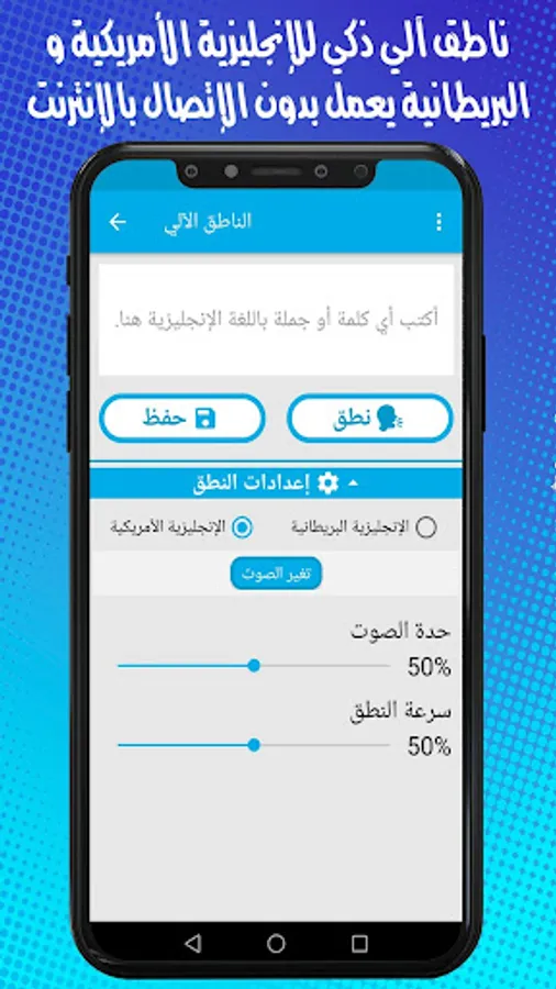 - يوجد ناطق آلي ذكي باللهجتين الأمريكية و البريطانية يعمل بدون الإتصال بالإنترنت مع التحكم في حدة و سرعة الصوت و كذلك يمكنك إختيار المتحدث رجل أو إمرأة.
