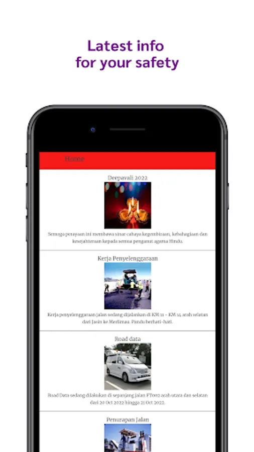 Our in-app incident feed will keep you informed about any unusual traffic conditions along your route on our maintained road to let you see what’s happening up ahead.