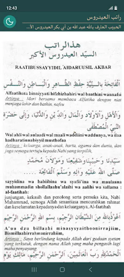 Ratib Al-Idrus or Al-Aydrus is a prayer composition composed by the guardian of the Qutub Habib Abdullah bin Abu Bakar As-Sakran Al-Akbar, who was born in Tarim (Yemen) on 10 Dzulhijjah 811 H, and died in 865 H (1445 AD) ). Ratib Al-Aydrus is also called Syamsu Syumus (the sun of the Sun) because of the majesty of this wirid practice, before the presence of Ratib Al-Haddad and Ratib Al-Atthas. In addition to strengthening faith, Ratib Al-Aydrus is very useful for smooth sustenance, smooth study or recitation.