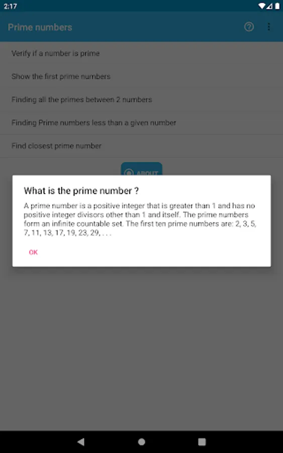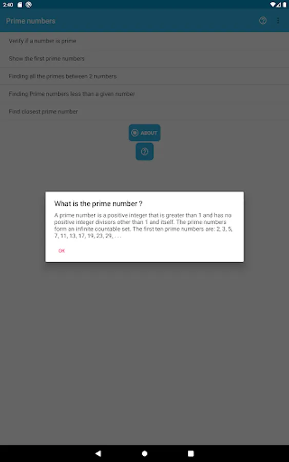 This application is intended for all people who are interested in the topic of prime numbers, especially for pupils, students and high educated people.