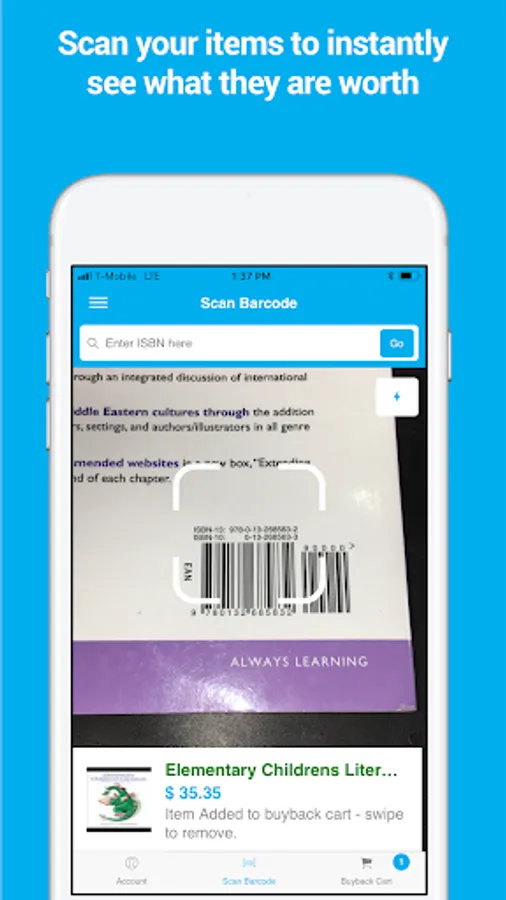 1. Scan or enter ISBN's into App (If we are buying the item it will be added to the cart).
