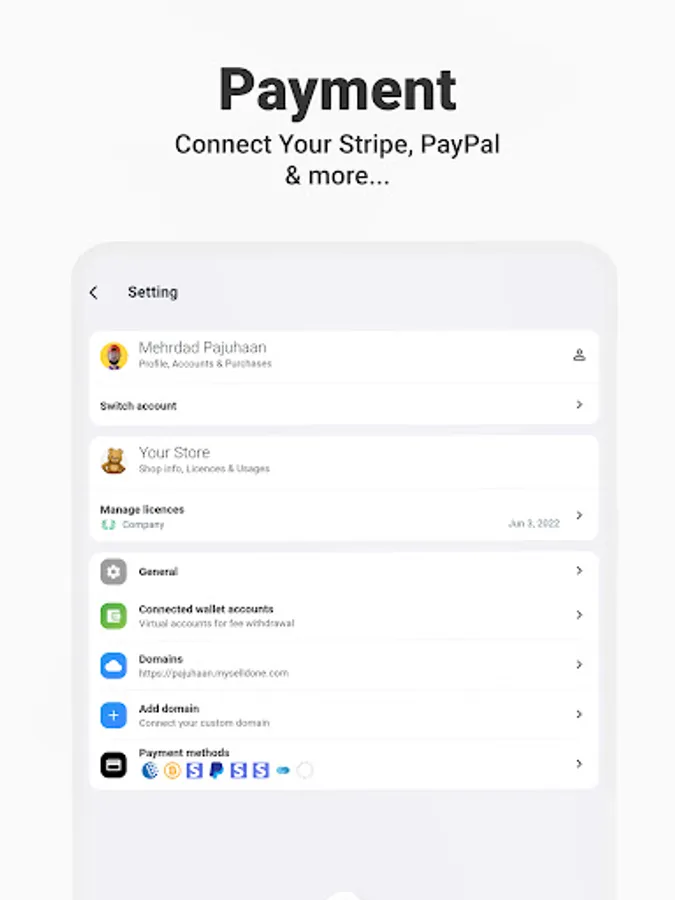Create a dynamic online store without a single line of code or plugin installation. With Selldone Business OS, launching your ecommerce platform is a breeze. Simply choose your preferred payment provider, such as Stripe, connect it to your website, and watch your business take off on your very own custom domain.