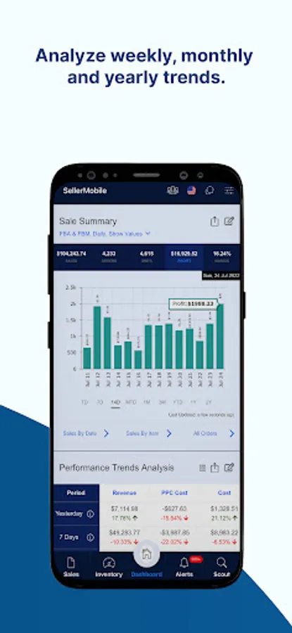 SellerMobile is a software solution stack for ecommerce businesses. Get access to customizable dashboards and track KPIs. Automate pricing & product review to maximize profitability. And use advanced inventory management & forecasting to reduce lost revenue.