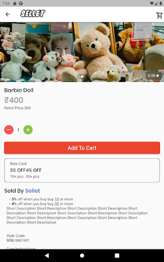 At Sellet, the retailers can buy toys at wholesale prices and sell it to their customers at good profit margins. We have a large variety of toys available. You will find toys for almost all age groups and all kinds of toy. Download now to find out. We only accept bulk orders. So the products are for the kids but they are to be sold to dealers who sell toys across India.