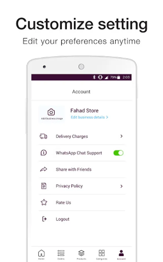 1. Enter your Business Name, Phone Number and start adding your products. Your Digi Dukaan will be created immediately. You can add products to your online store one by one, using our desktop import functionality, or our readymade catalogues that are fully customizable.