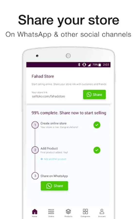 2. Share web store links with anyone on WhatsApp, WhatsApp business, Facebook or Instagram.