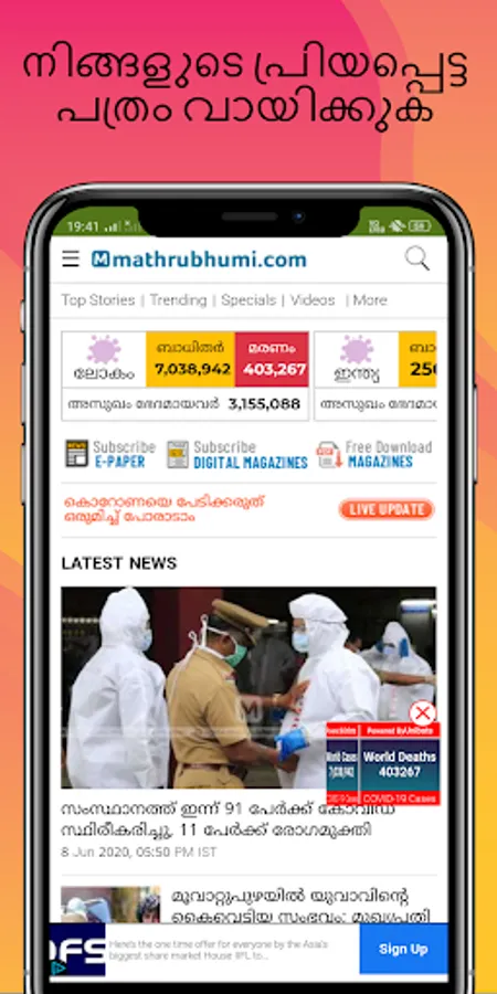 This app will help you to read local Malayalam Newspapers and Malayalam News from all over the India including news from sports, economics and it will also provide you breaking Malayalam news instantly. You can check out latest Malayalam news from your favorite Malayalam news publisher and read latest breaking news in one app. This app collects news from different Malayalam news publishers