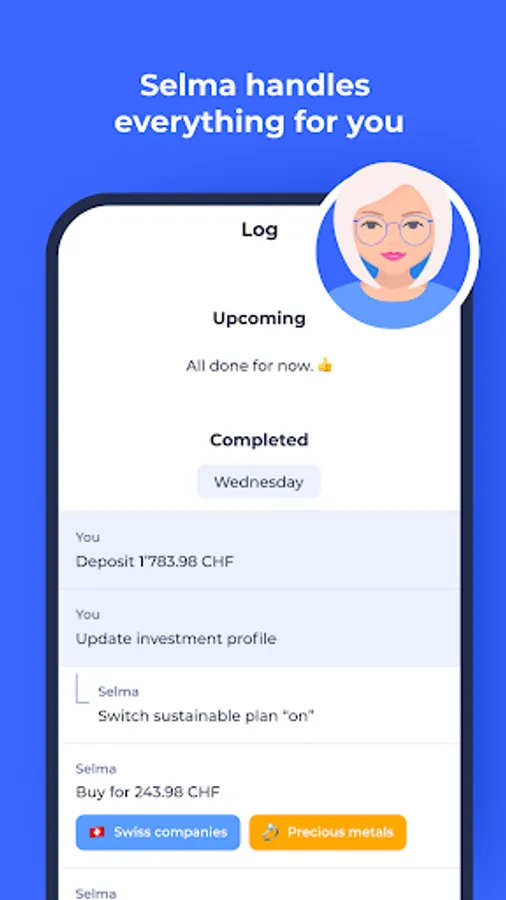 Selma is your digital investment assistant. With Selma’s guidance you can do the right things for your money.