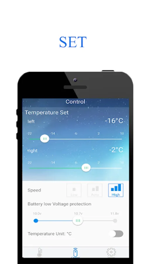 With this APP , unser can control the DC freezer /fridge remotely and achieve perfect operation experience . Start your wonderful journey with our DC Freezer immediately !