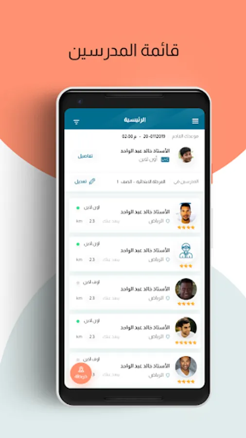 يستطيع الطالب بهذا التطبيق من عرض المدرسين ويمكنه أيضاً من تصفية المعلمين بناءاً على المكان او المسافة وكذلك عرض تفاصيل المدرسين كاملة وعرض تقييمات المدرس. يمكن أيضا حجز دروس خاصة مع أي مدرس متاح.