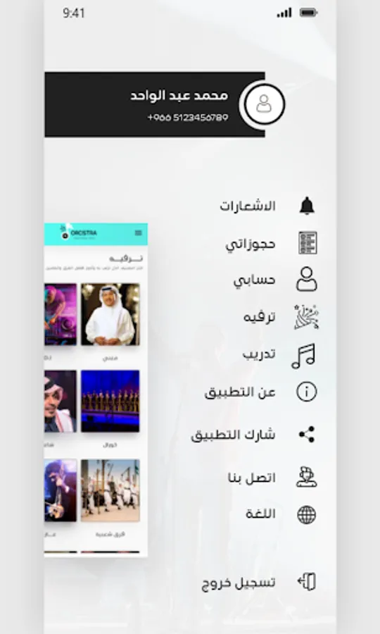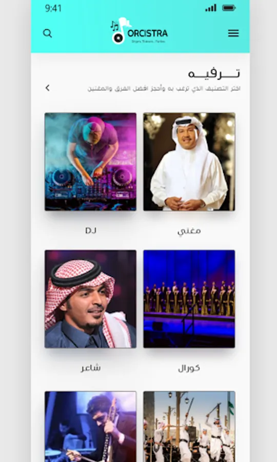 تطبيق أوركسترا لحجز المطربين والفرق ومدربين الموسيقى ٬ يحتوى التطبيق على العديد من المطربين السعوديين