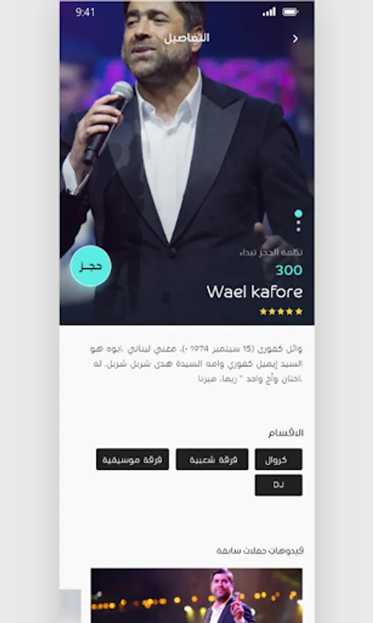 ٣- حجز مسبق للمطربين والمدربين ومعرفة أسعار المطربين والمدربين قبل الحجز