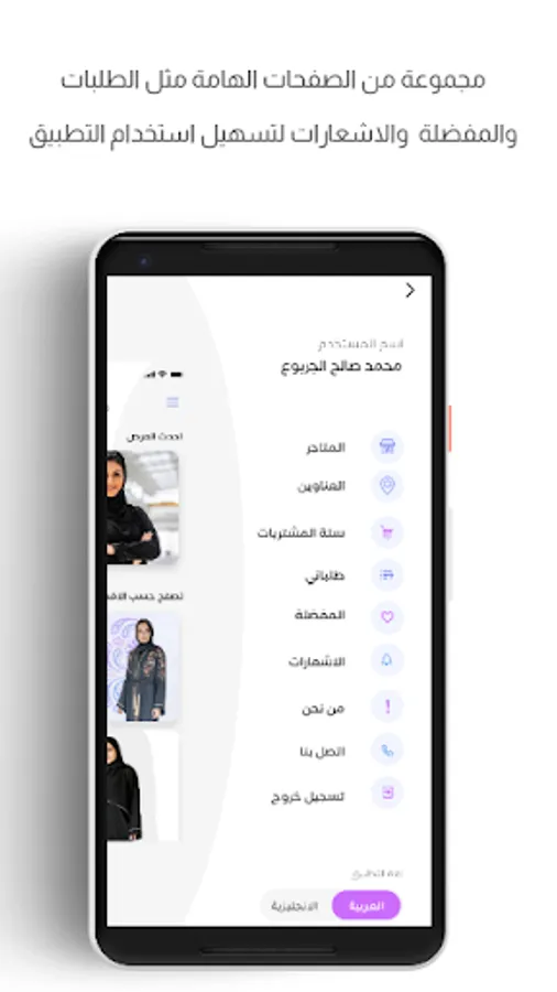 مجموعة من الصفحات الهامة مثل الطلبات والمفضلة والاشعارات لتسهيل استخدام التطبيق