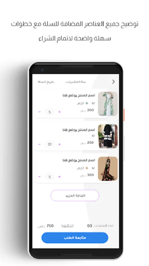 توضيح جميع العناصر المضافة للسلة مع خطوات سهلة واضحة لاتمام الشراء