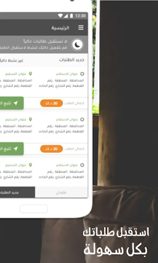 استقبل طلبات النقل عن طريق التطبيق
