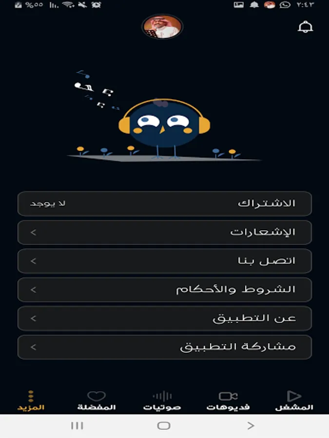 ٥-اشعارات المستخدم في حال وصول اي من ملفات الفيديو او الصوت