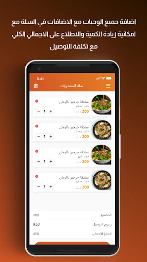 Adding all meals with additions to the basket with the ability to increase the quantity and see the total total with the cost of delivery